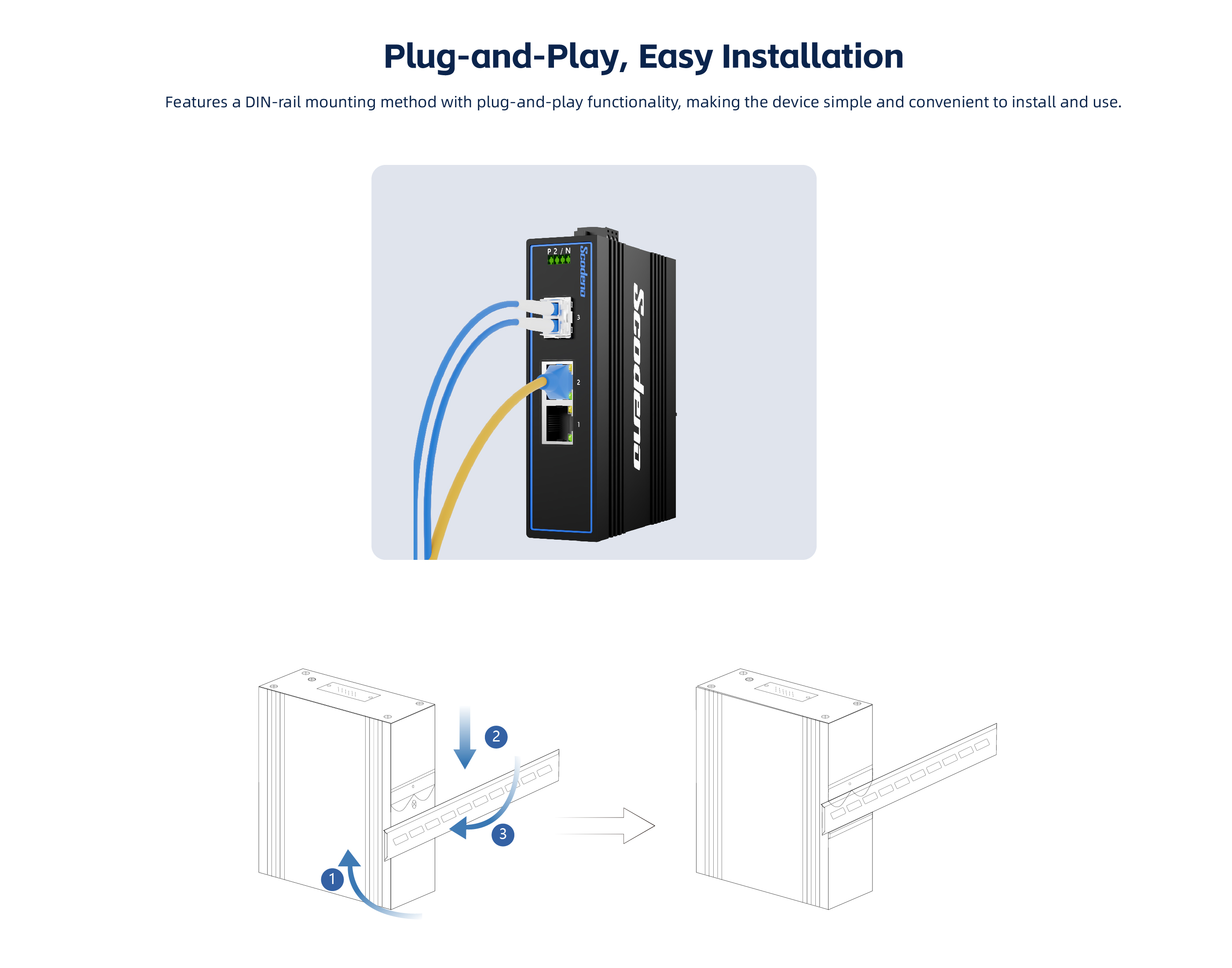 This device is a gigabit optical and two 10/100/1000 Base-T unmanaged industrial