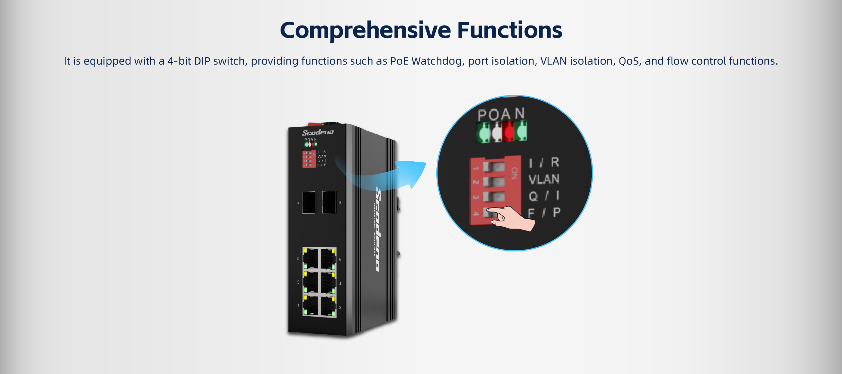This device is 2 100Mbps optical and 6 10/100 Base TX unmanaged industrial Ethernet