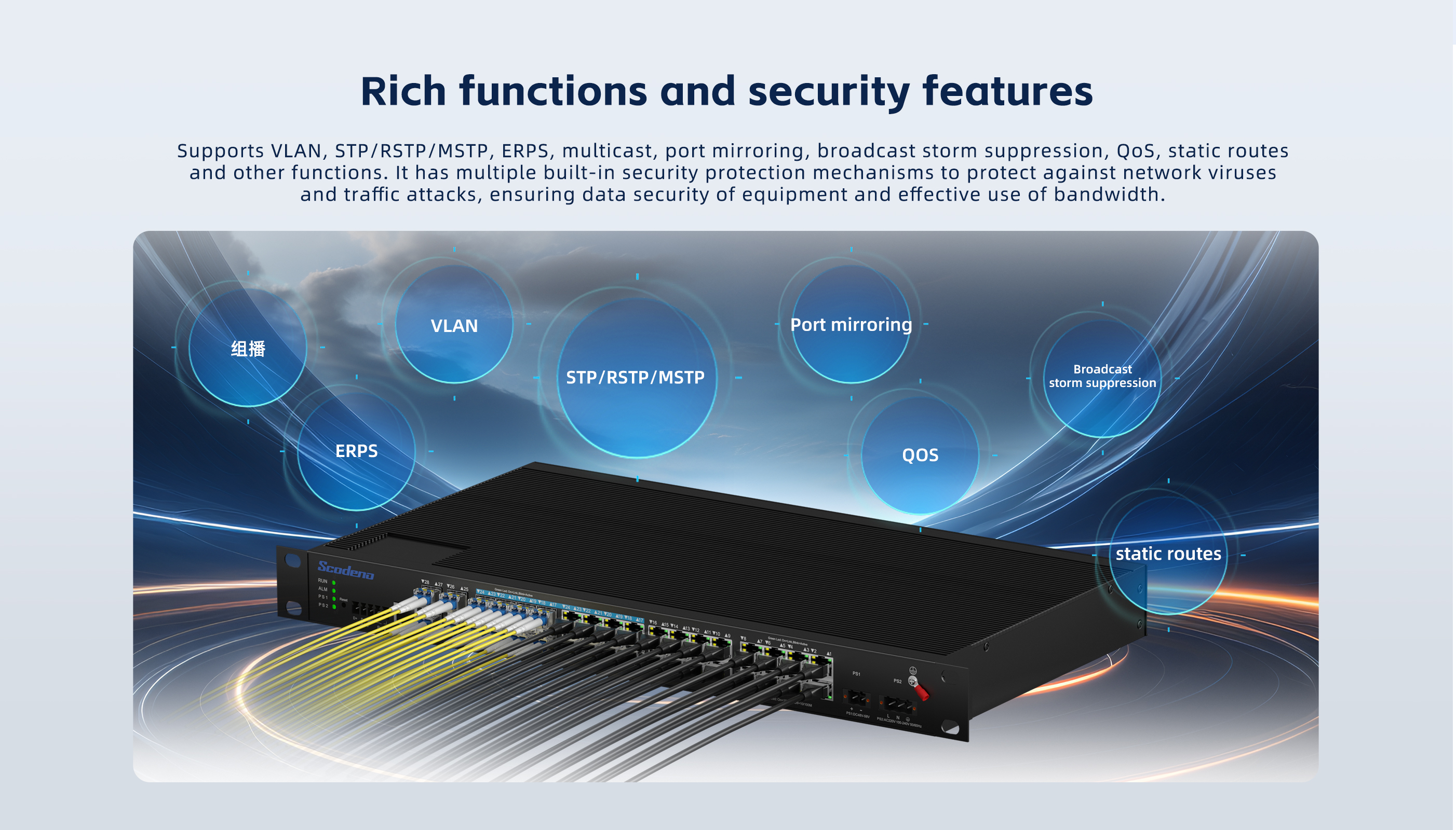 lRobust network security strategies and comprehensive security features to safeguard the network. Supports static routing, IS-IS, OSPFv2/RIP, meeting Layer 3 transmission requirements.