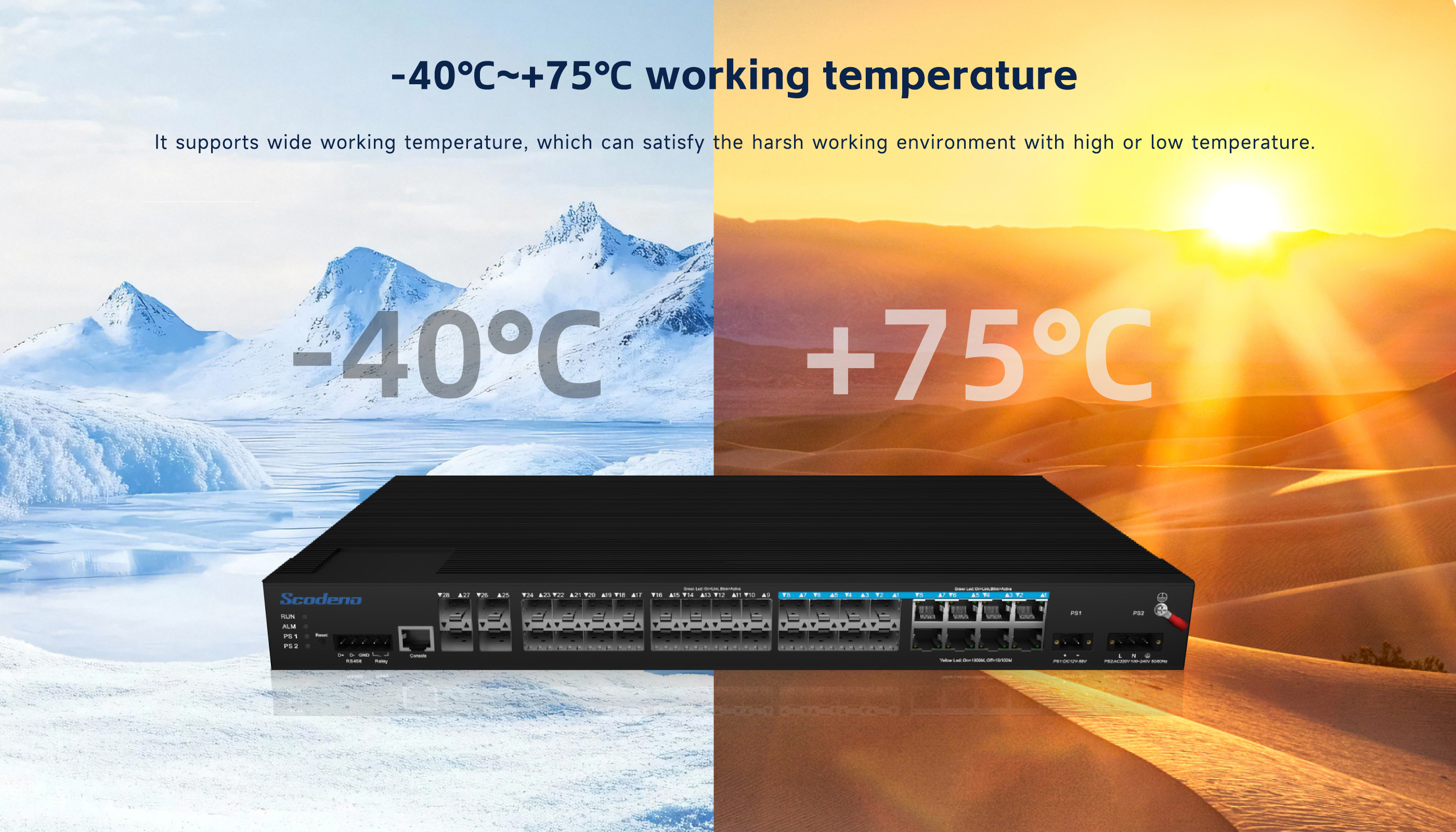 lOperating temperature range of -40℃ to +75℃, IP40 protection rating, wide temperature tolerance and high protection for harsh environments.