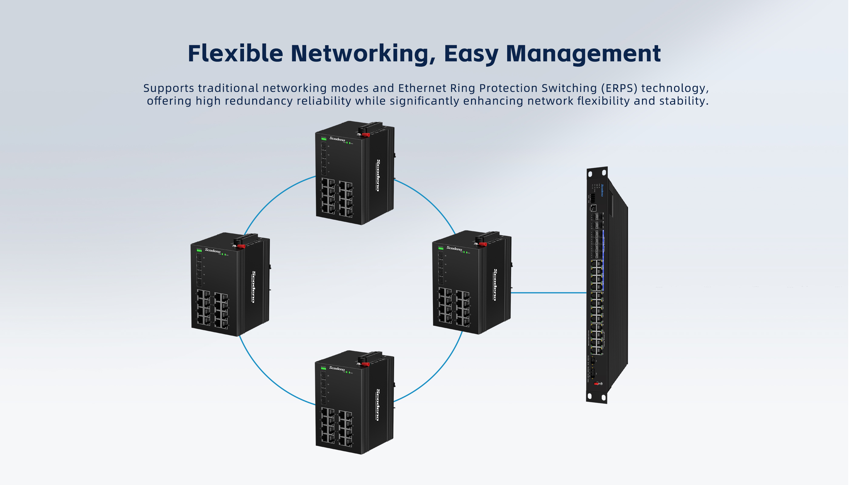 lERPS recovery time is less than 15ms, ensuring business continuity.