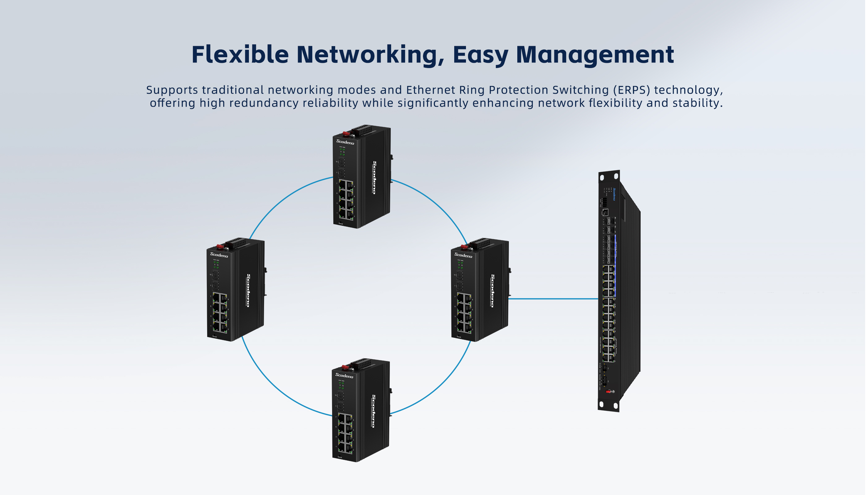 lERPS recovery time is less than 15ms, ensuring business continuity.