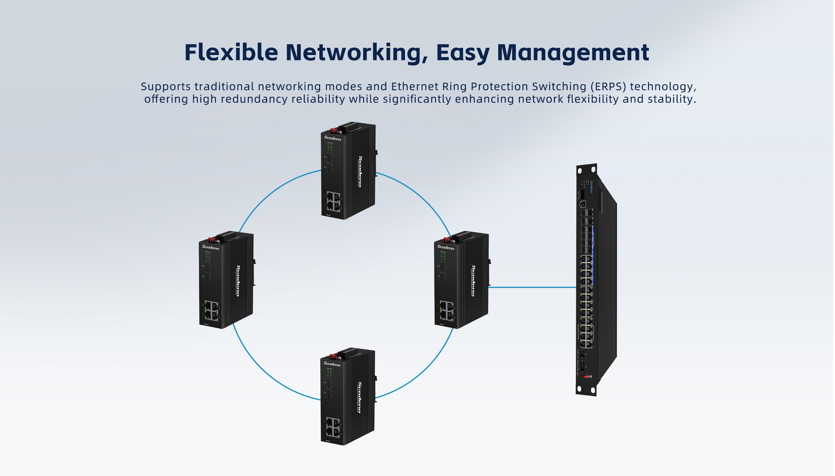 lERPS recovery time is less than 15ms, ensuring business continuity.