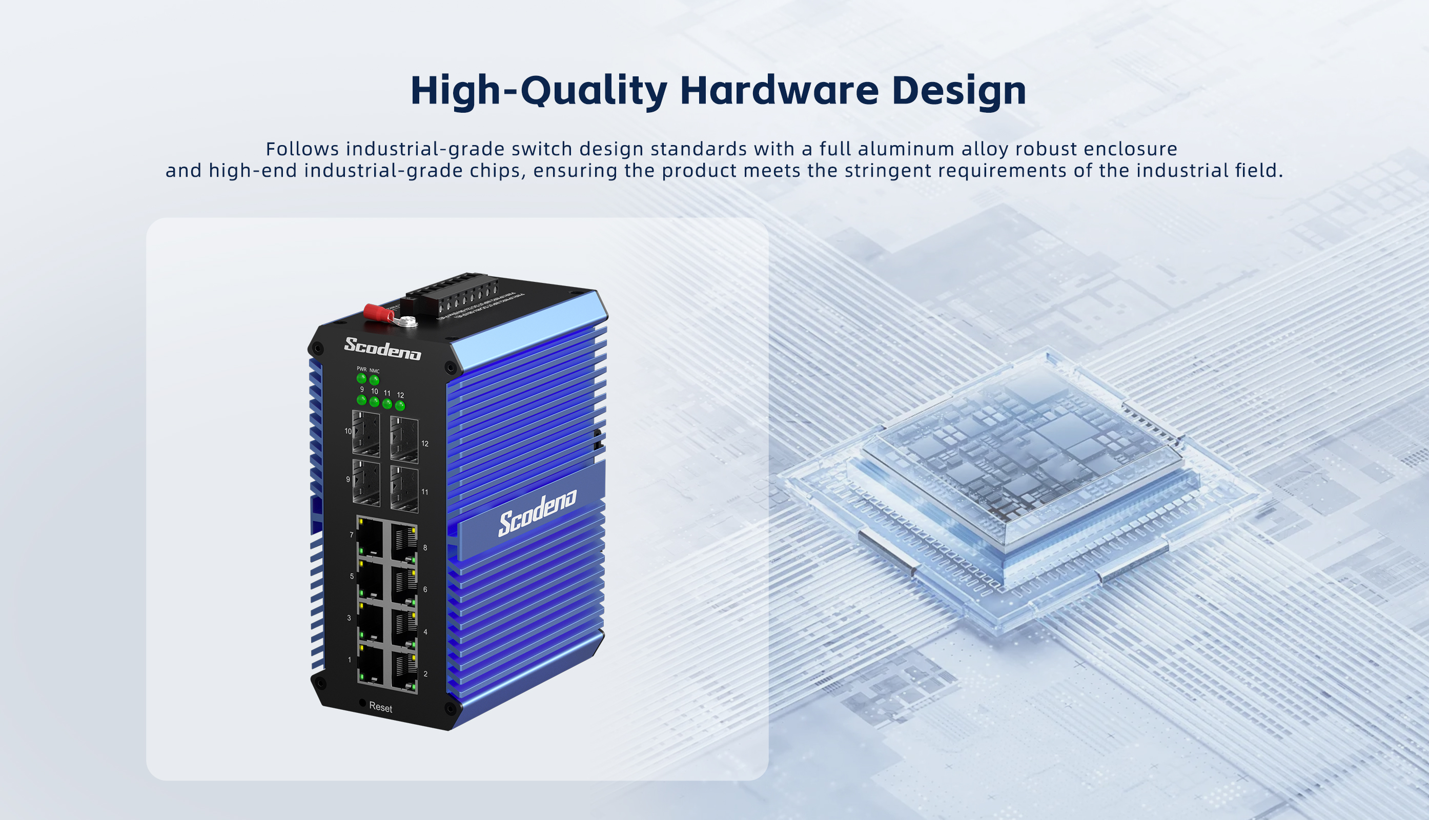 A Layer 2 switch with 4 Gigabit optical ports + 8 Gigabit electrical ports, high buffer capacity with zero packet loss, balancing "backbone transmission" and "terminal interconnection," simplifying network hierarchy.