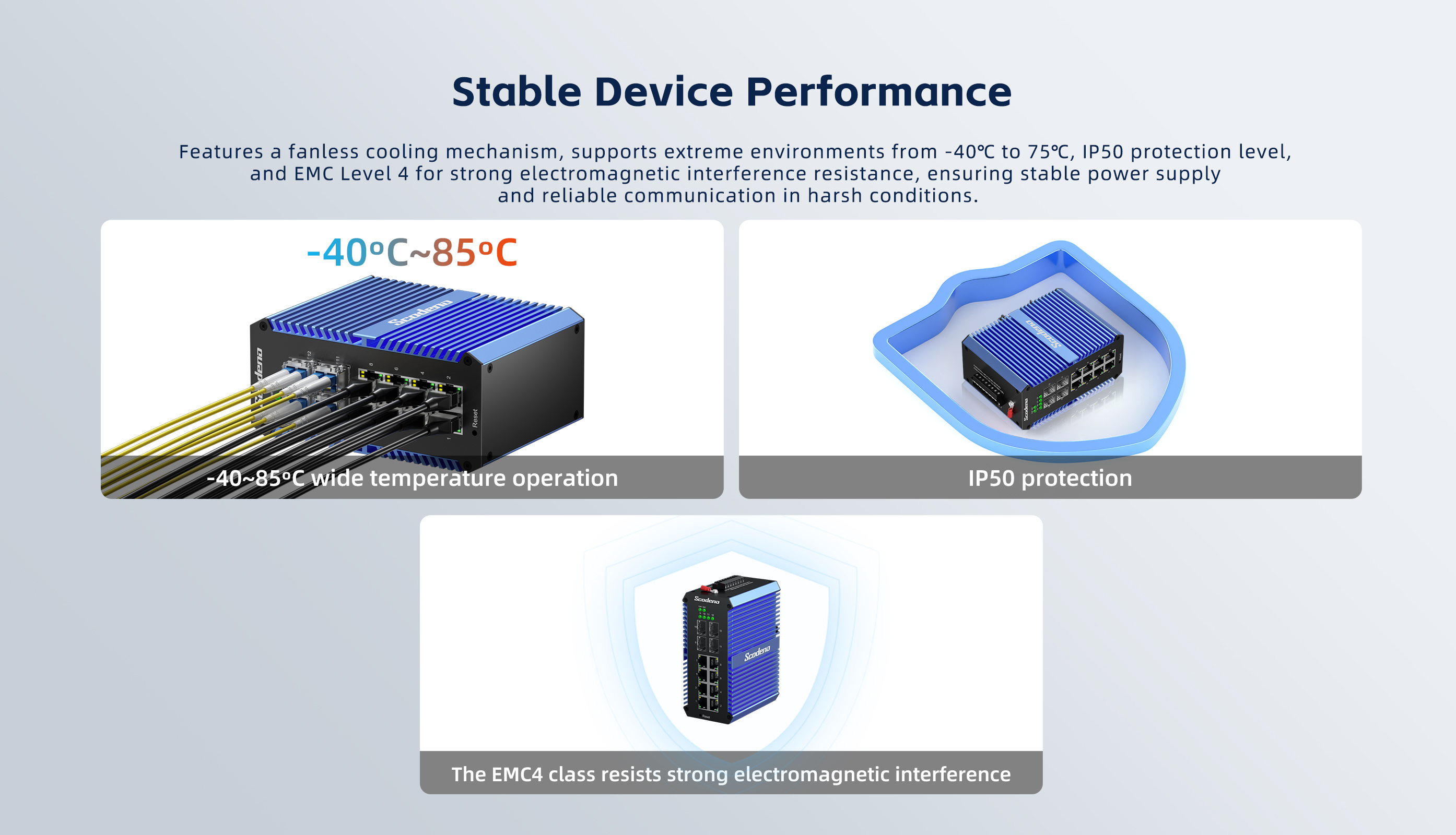 lOperating temperature range of -40℃ to +85℃, IP50 protection rating, wide temperature and high protection for harsh environments.