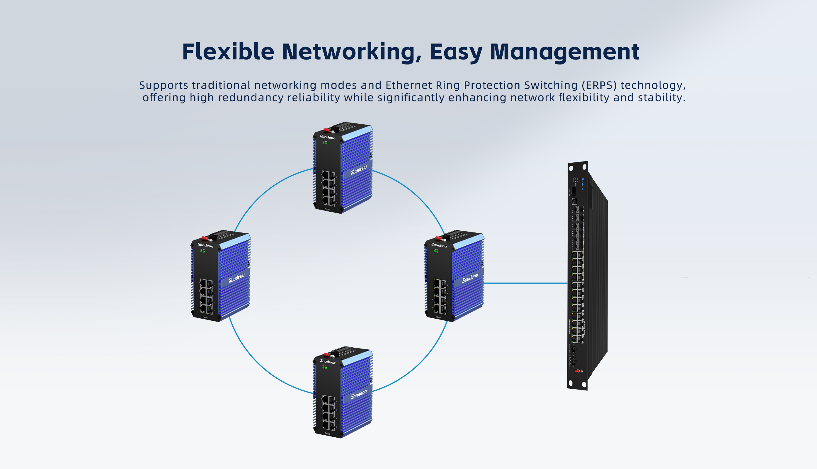 lERPS recovery time is less than 15ms, ensuring business continuity.