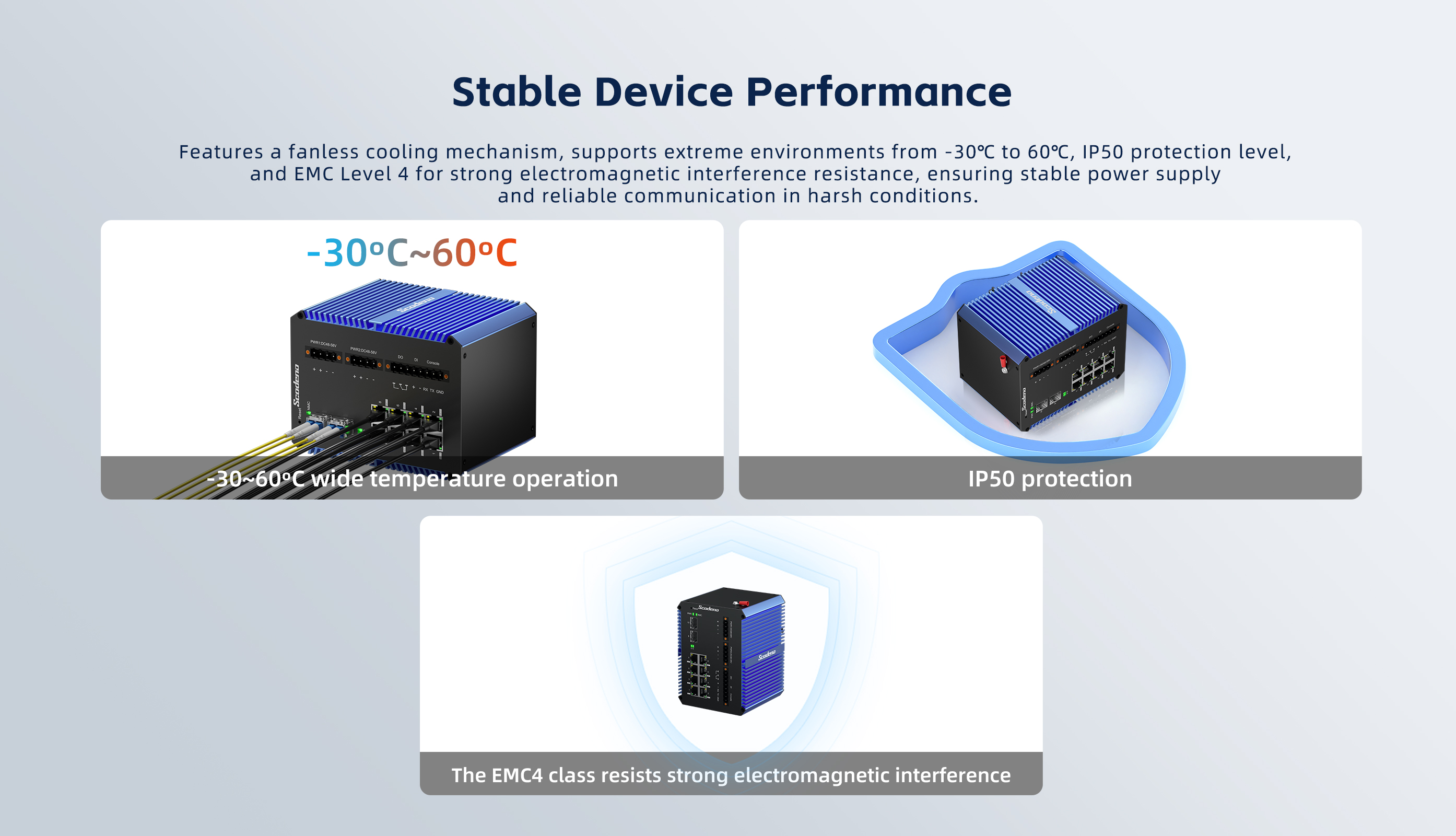 lOperating temperature range of -30℃~+60℃, IP50 protection rating, wide temperature and high protection for harsh environments.