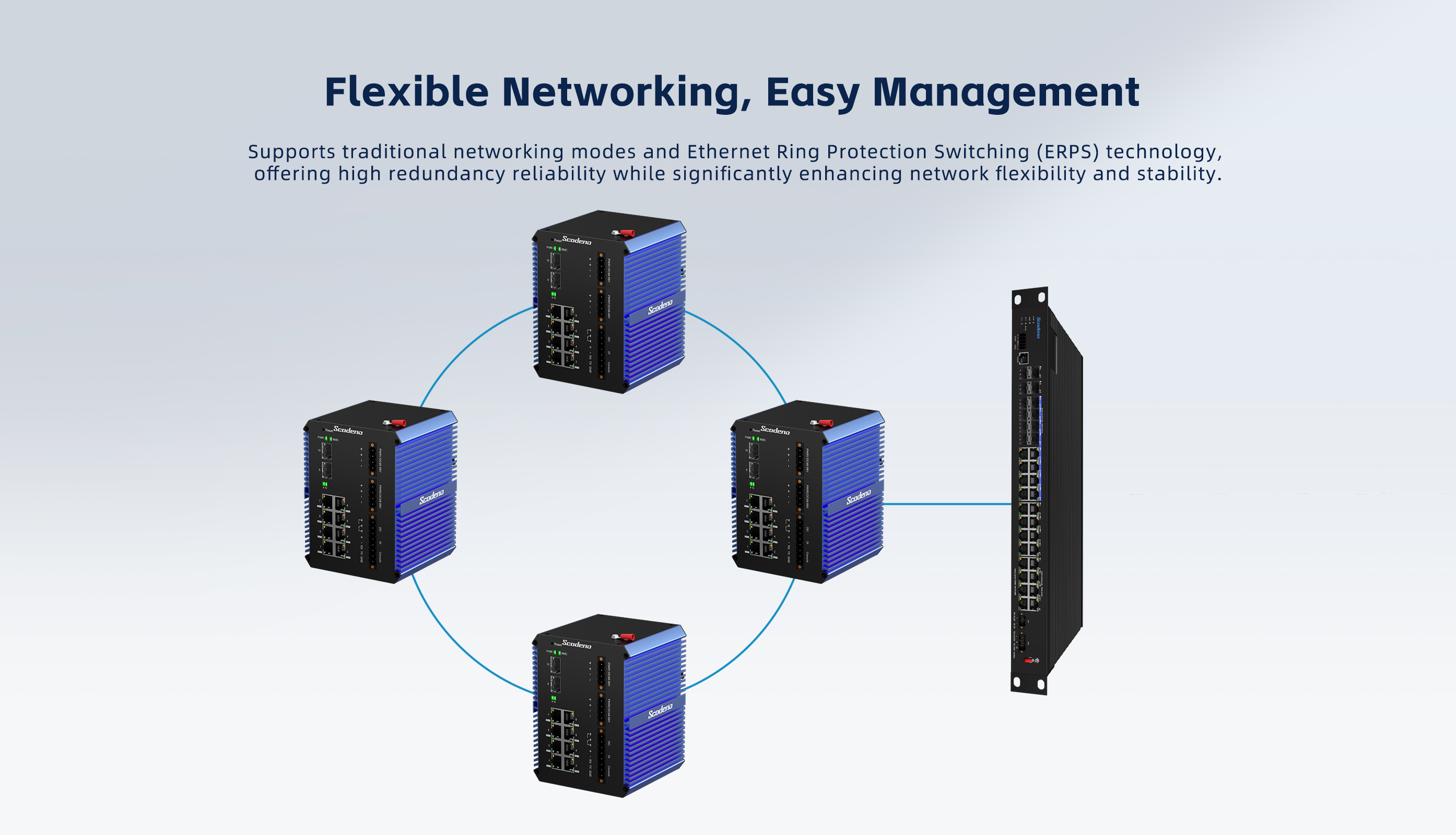 lERPS recovery time is less than 15ms, ensuring business continuity.