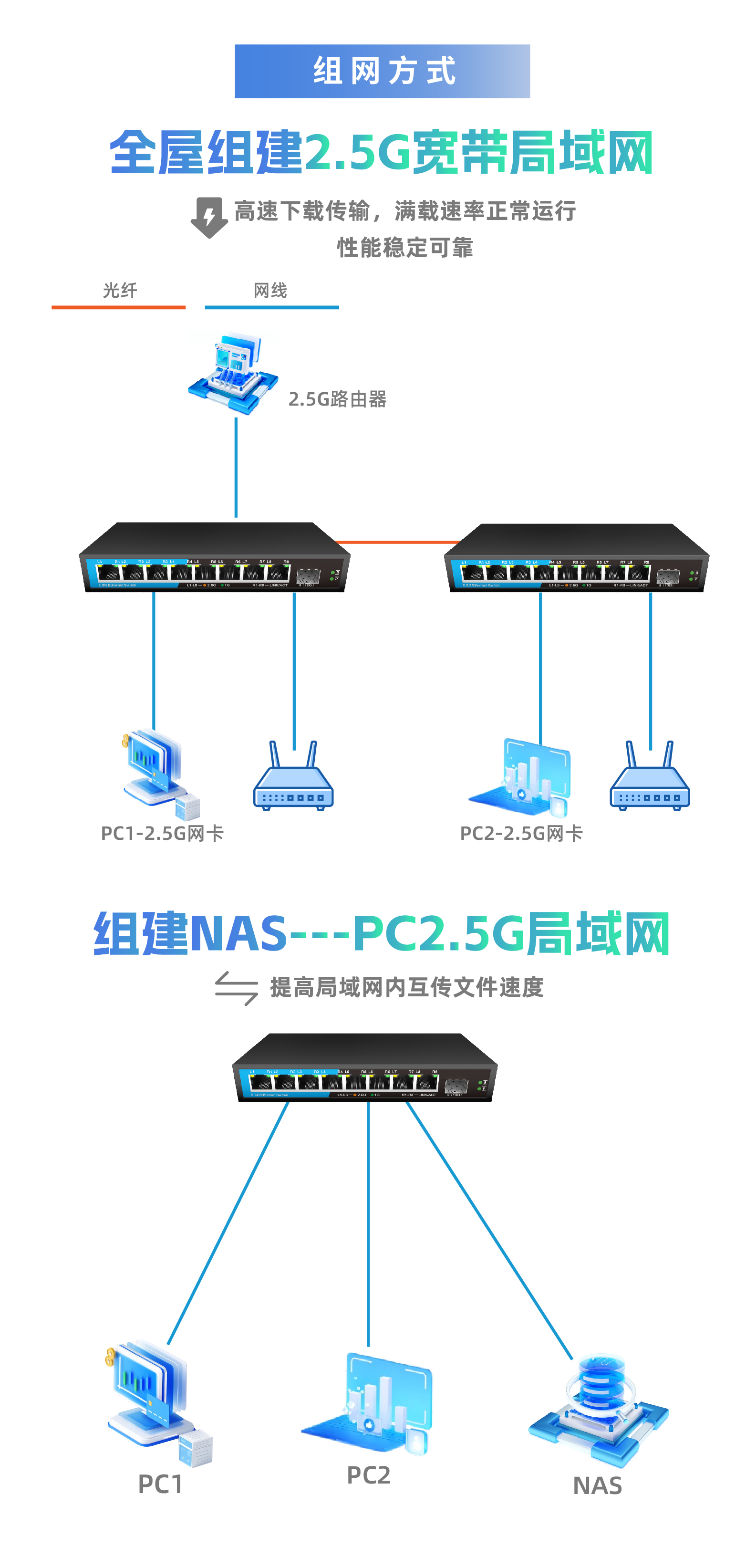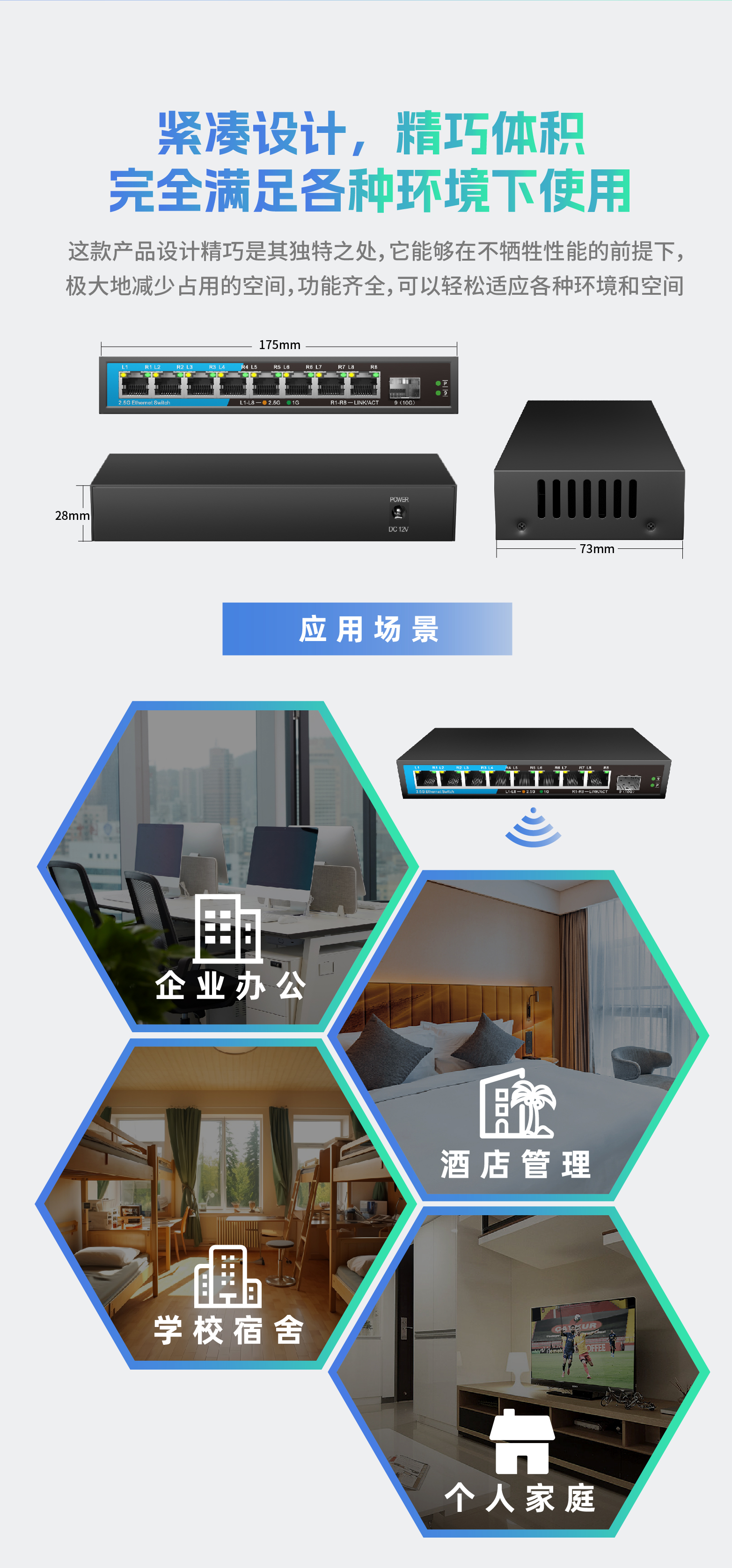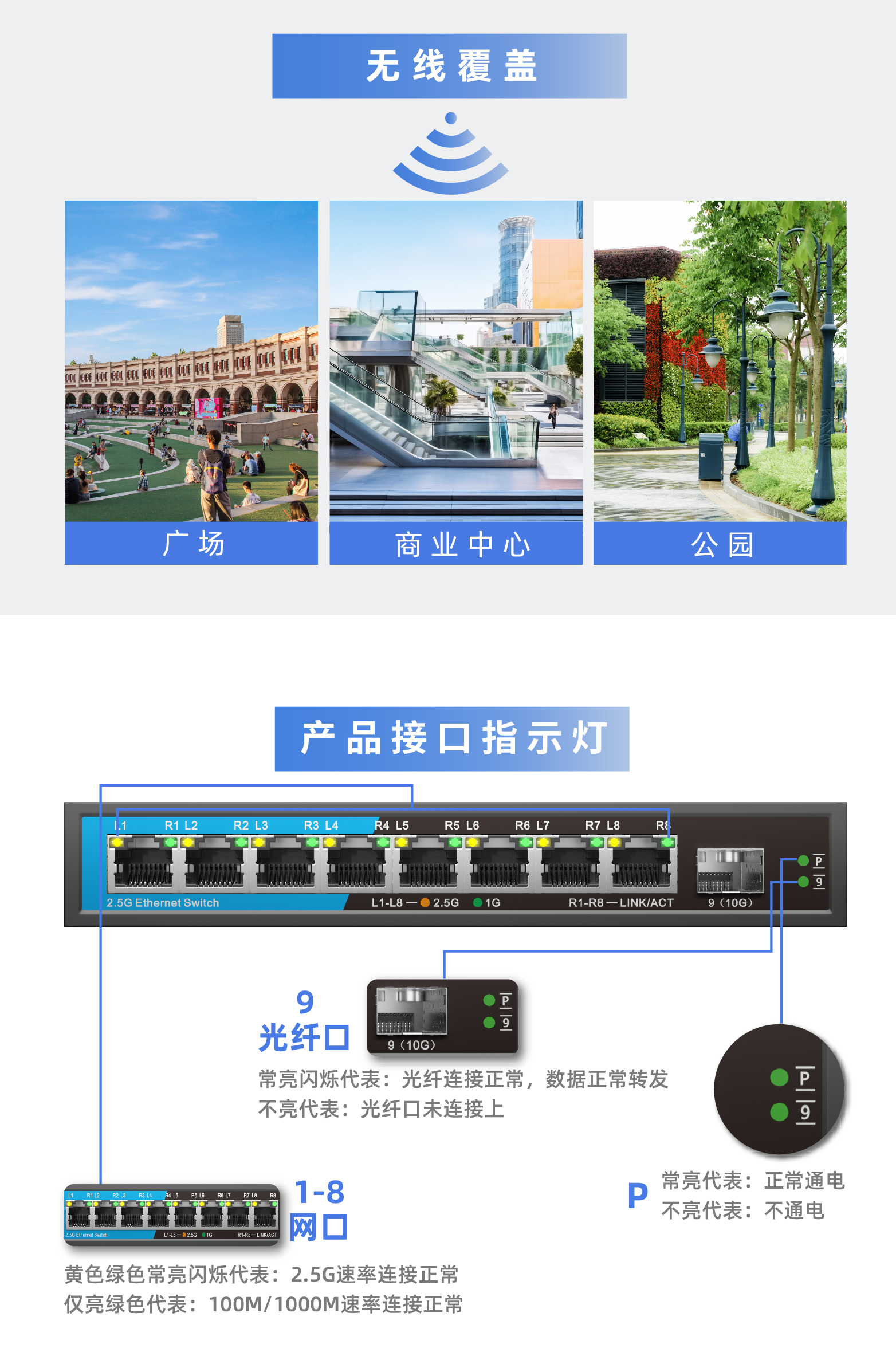 The S200-9XH-X series unmanaged switch has 8 10/100/1000/2500Mbps adaptive RJ45
