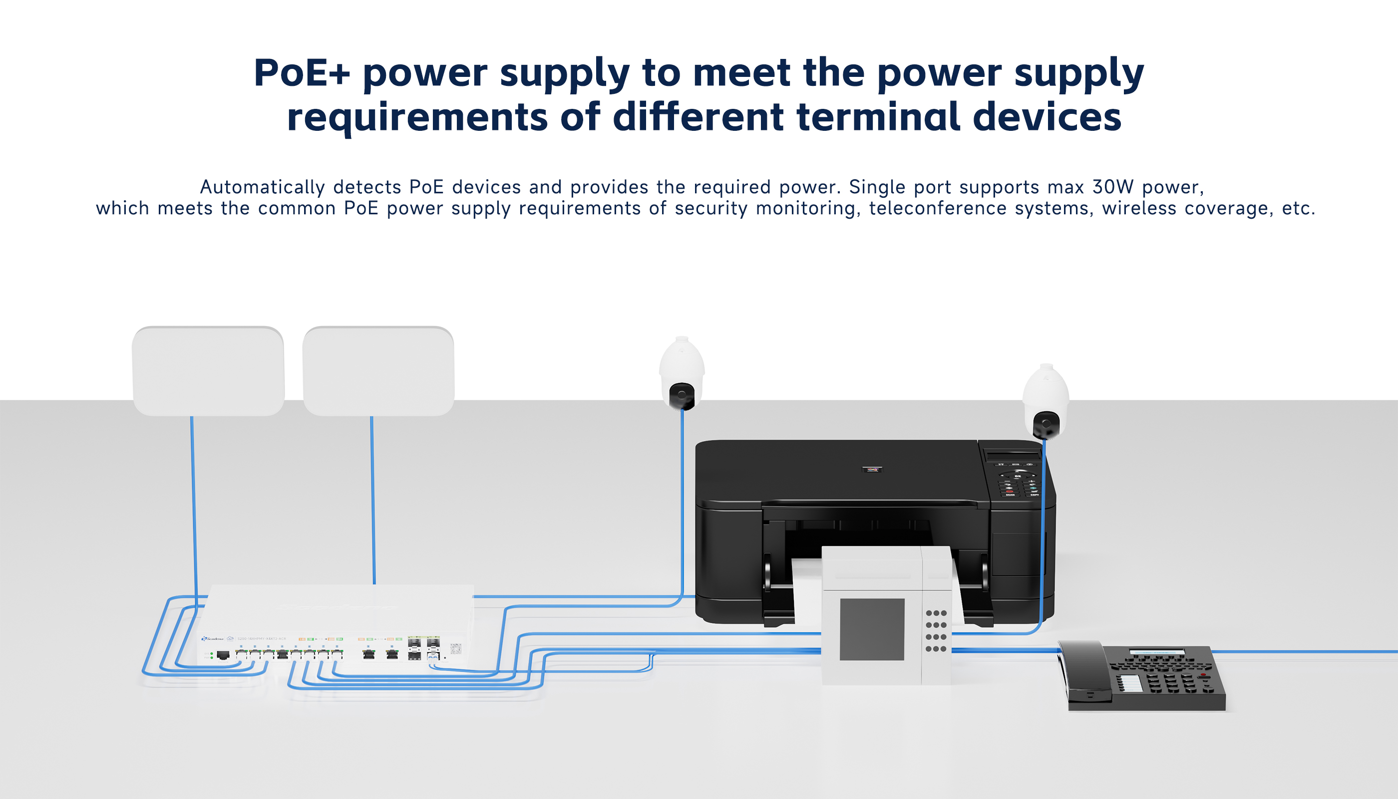 · Compliant with IEEE 802.3af/at standards, single port supports max 30W.