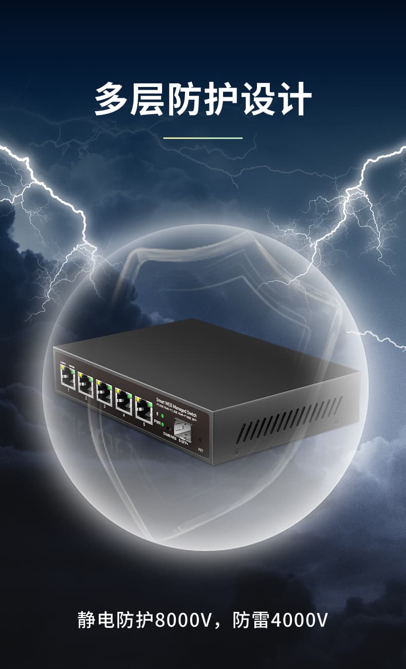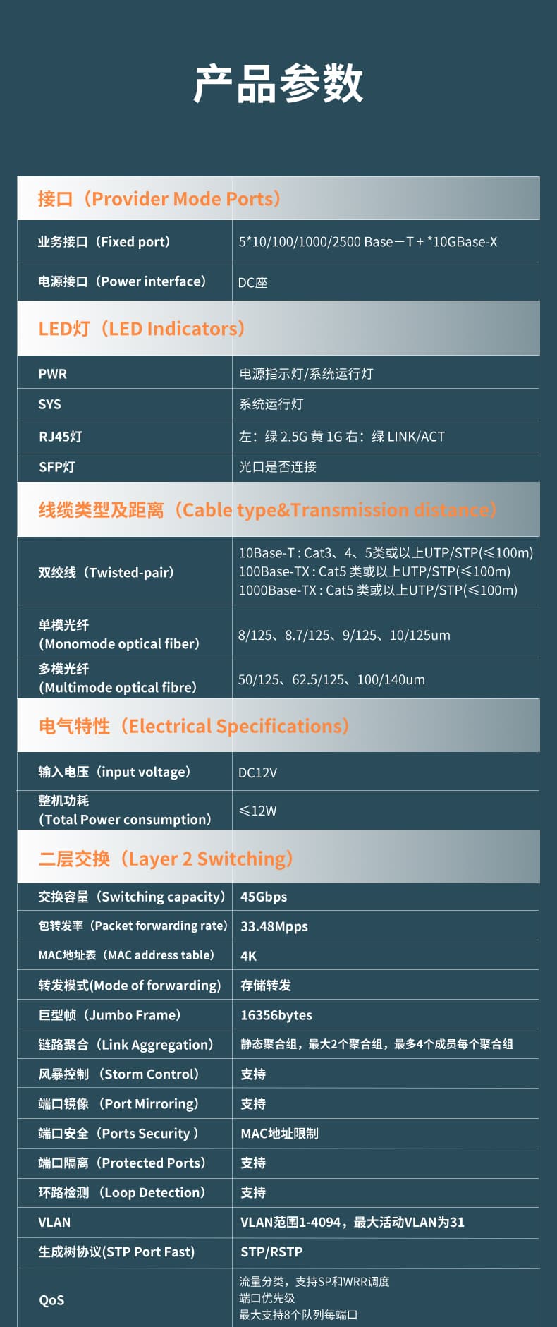 1 10G SFP optical interface. Each RJ45 port supports automatic flipping and line speed forwarding
