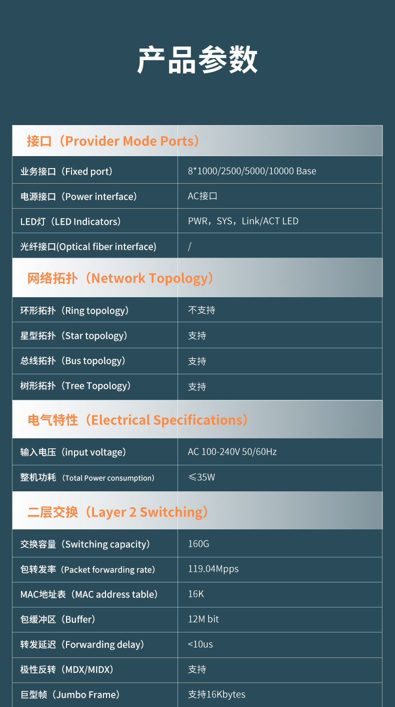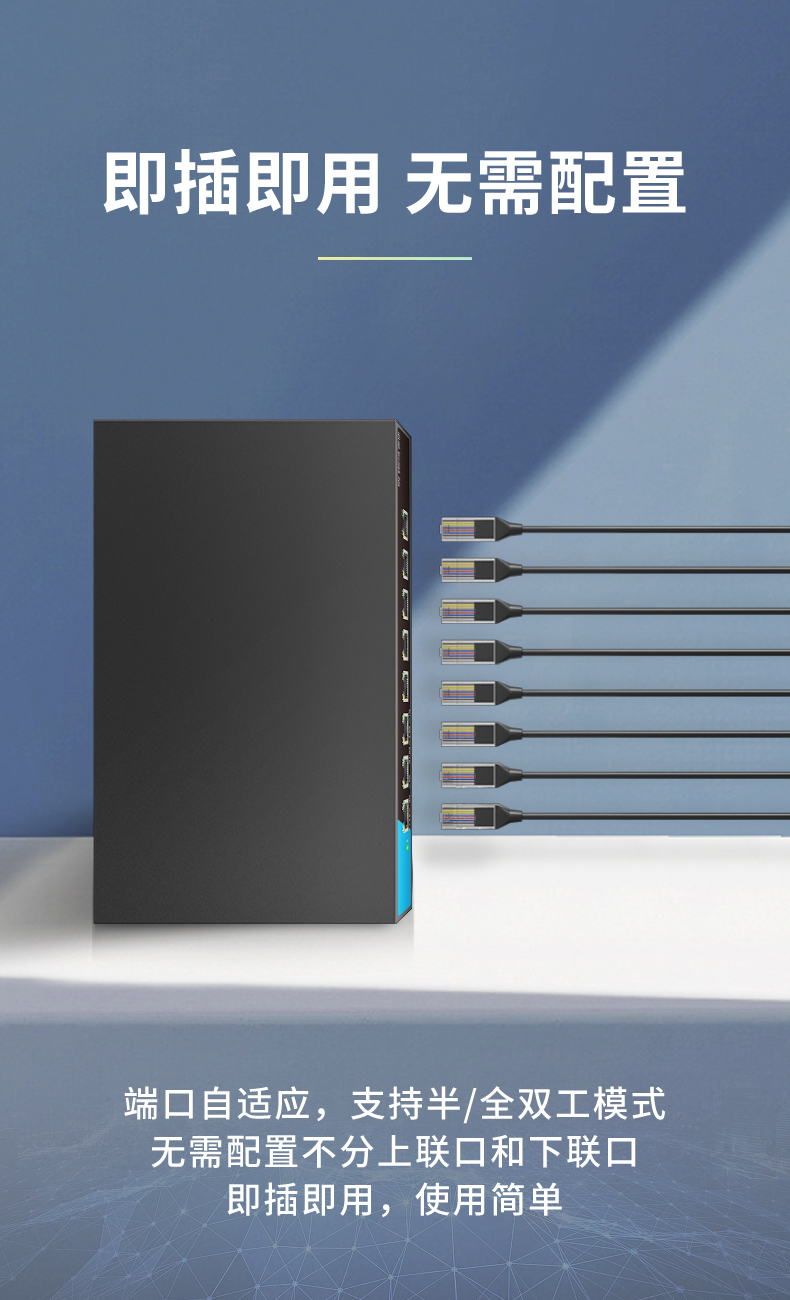 Each RJ45 port supports automatic flipping and line speed forwarding