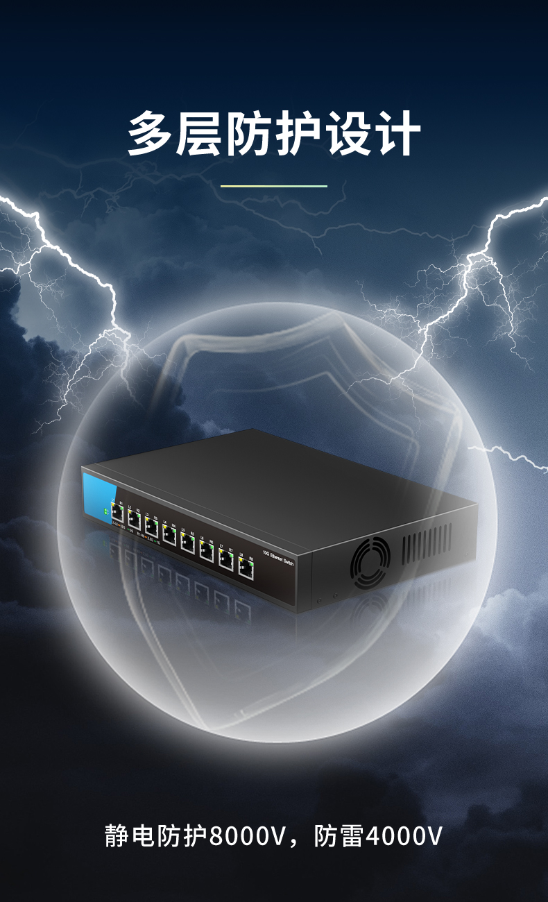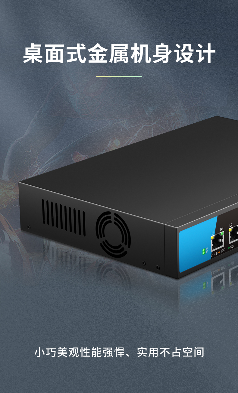 S200-8XT-AC series unmanaged switch with 8 adaptive RJ45 ports of