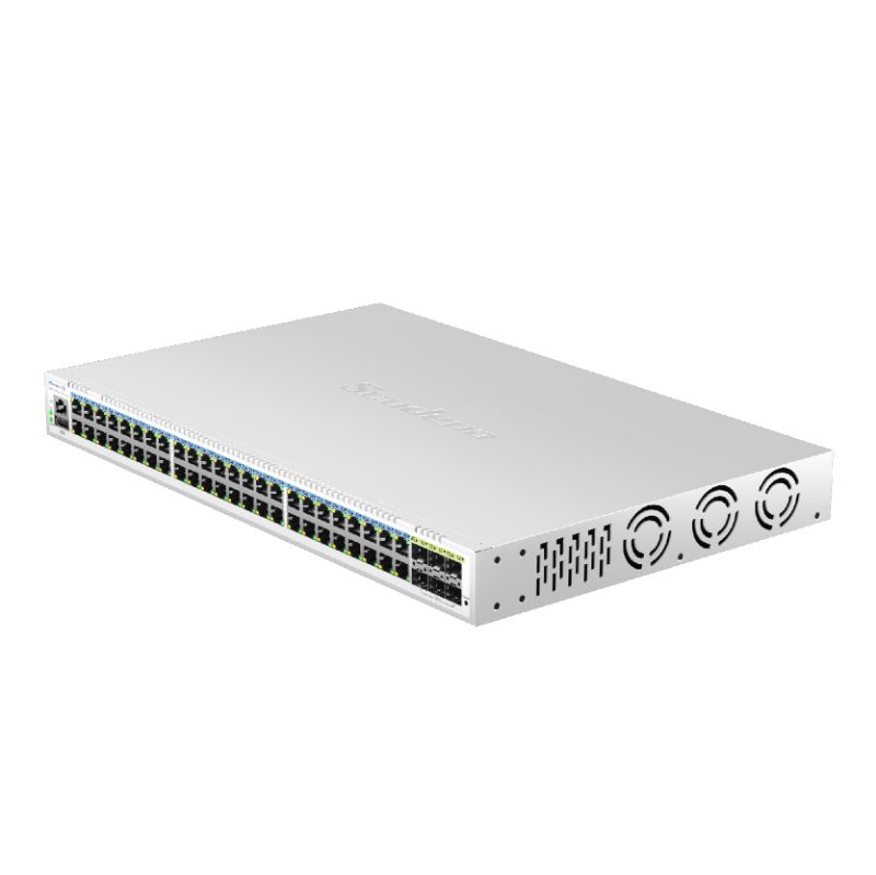S200-54XGMY-X6-ACR features 48 adaptive RJ45 ports (10/100/1000Mbps) and 6*10G SFP+ optical interfaces. Each RJ45 port supports auto-port switching and line-rate forwarding capabilities. Utilizing store-and-forward technology with QoS integration, it ensures efficient bandwidth allocation across all ports for stable data transmission. The system provides multiple management options including CLI, web interface, and cloud-based administration, delivering intuitive operation and simplified maintenance.
