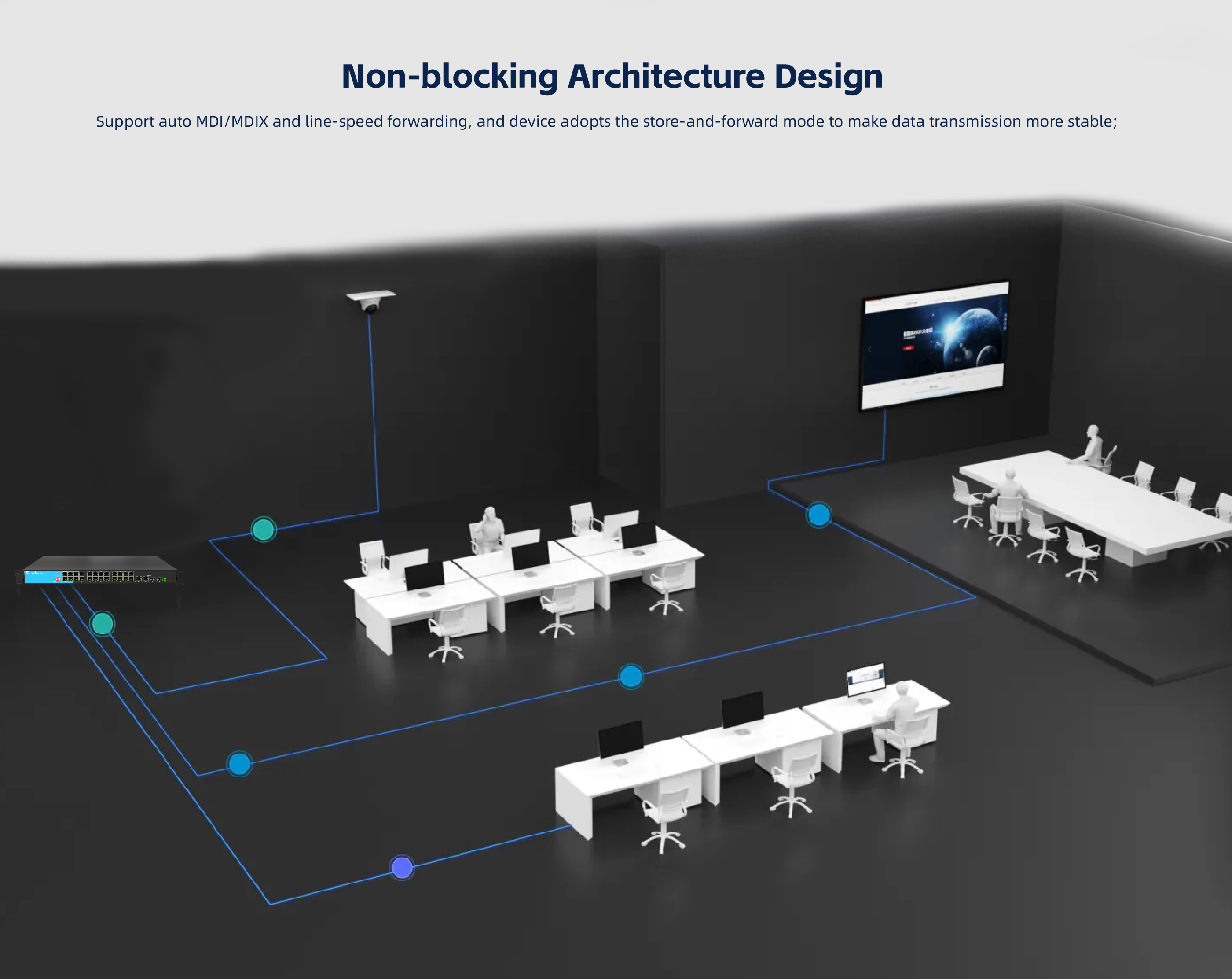 S200-28GP-B2S2-ACR unmanaged gigabit switch (supporting PoE function), with 24