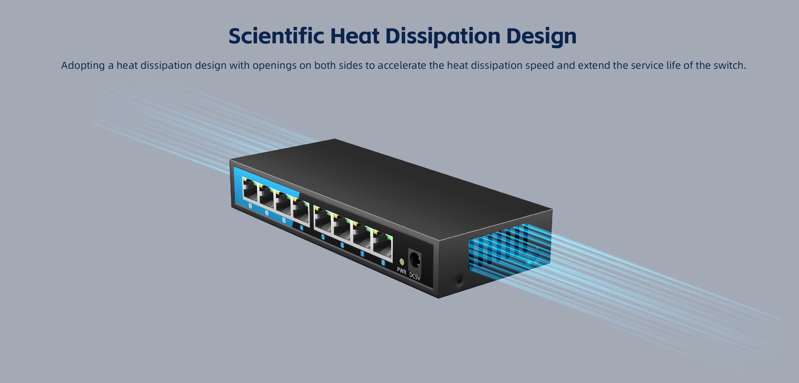 The product adopts storage and forwarding, fanless design, rich indicator light interfaces,