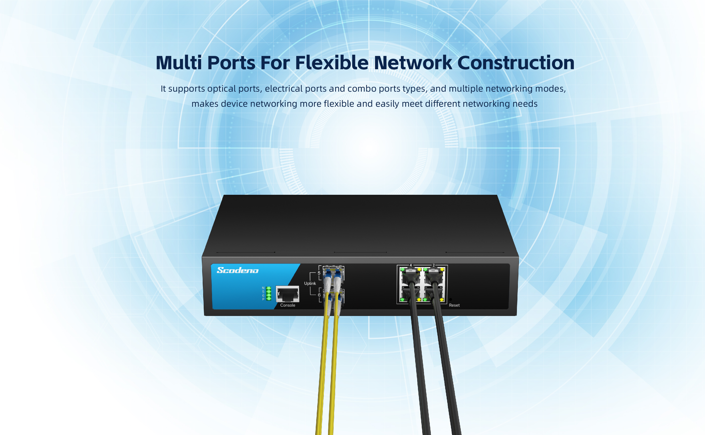| Fixed port | 2*1000 Base-X + 4*10/100/1000 Base-T |