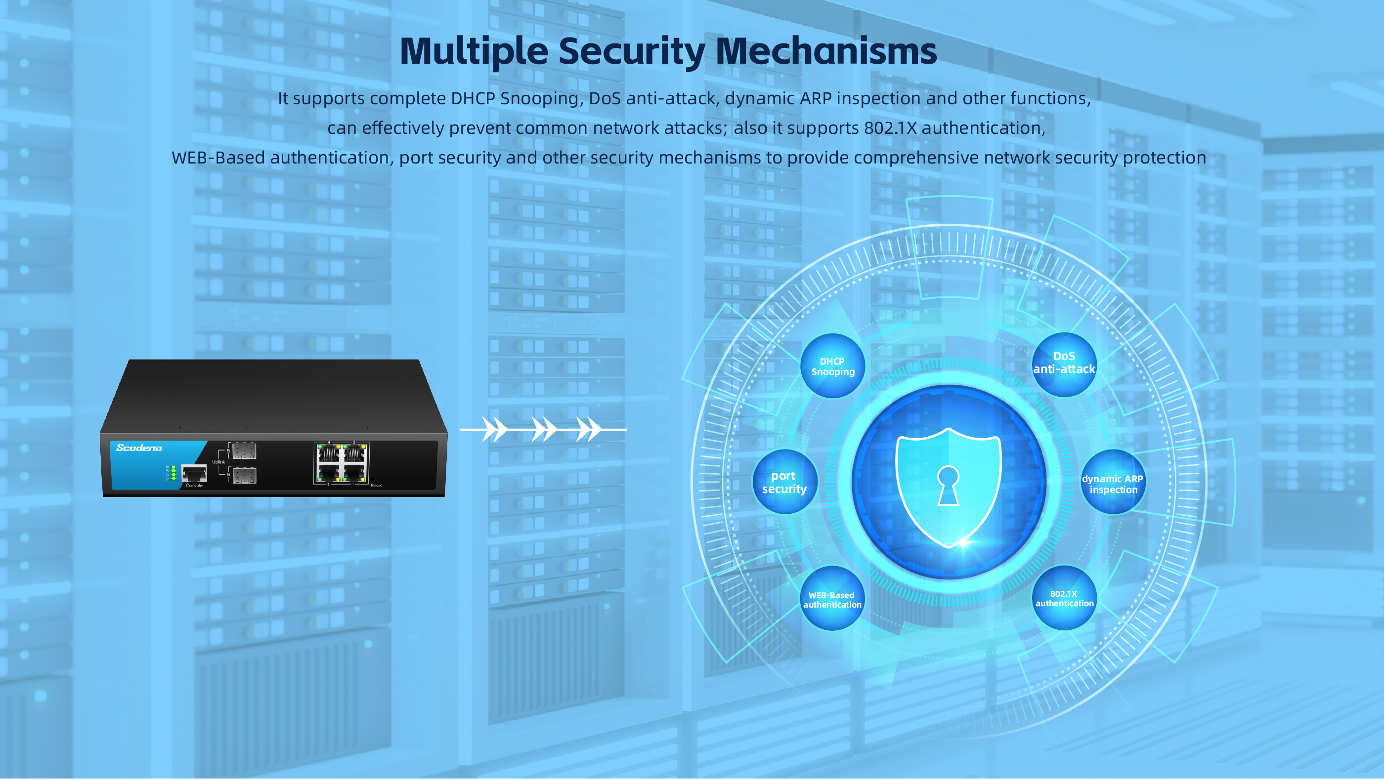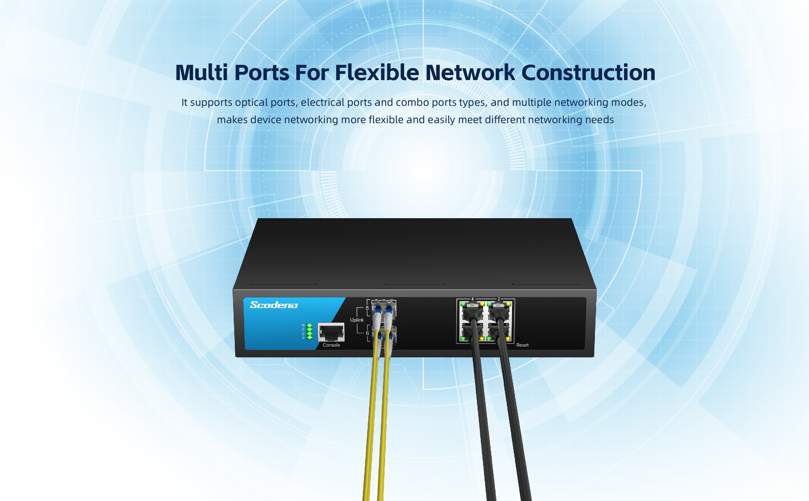 with 4 10/100/1000Mbps adaptive RJ45 ports and 2 SFP optical interfaces. Each