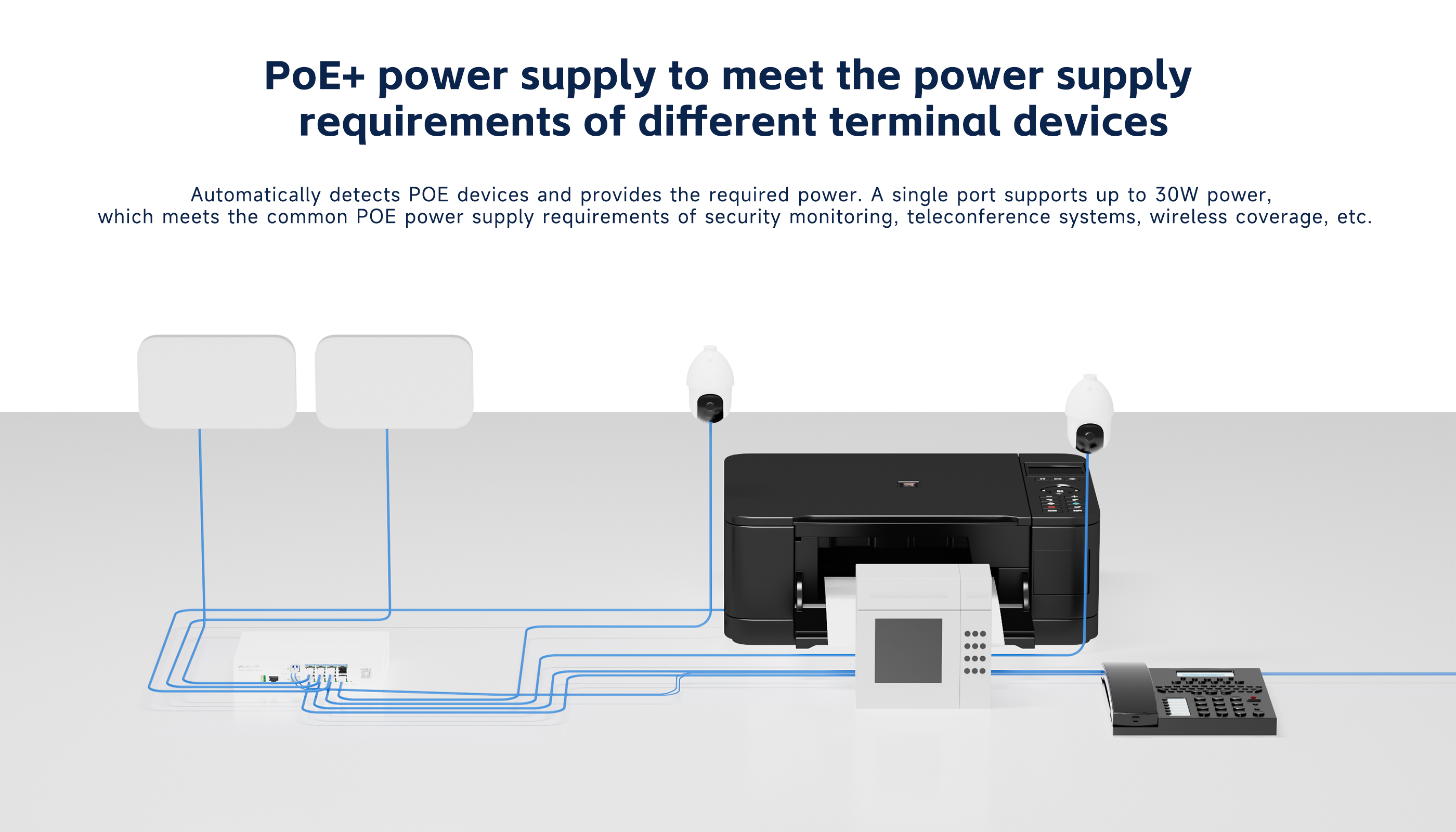 · In accordance with IEEE 802.3 af/at standard, single port support max 30W.