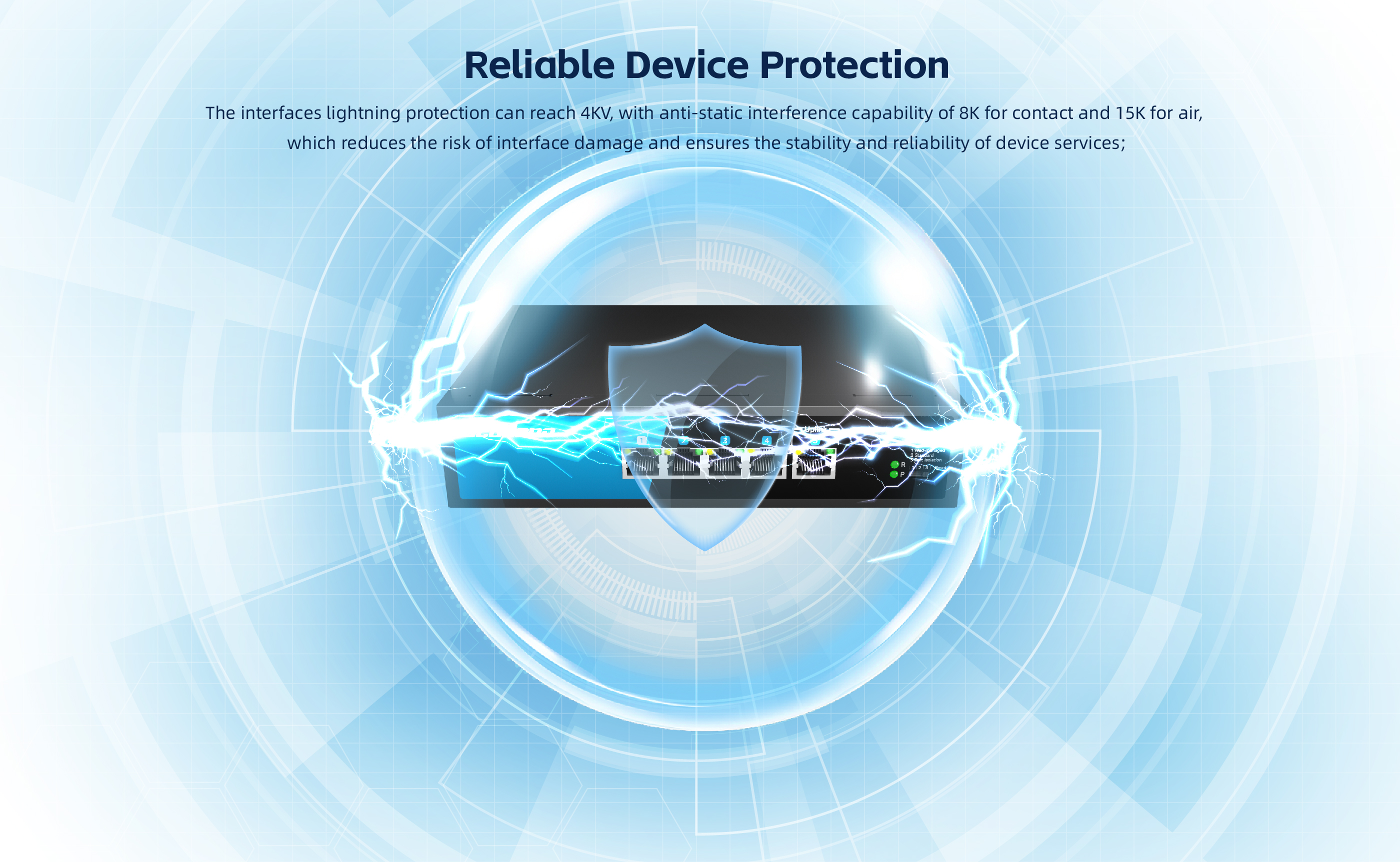 and line speed forwarding functions. Ports 1-4 can all support PoE power supply,