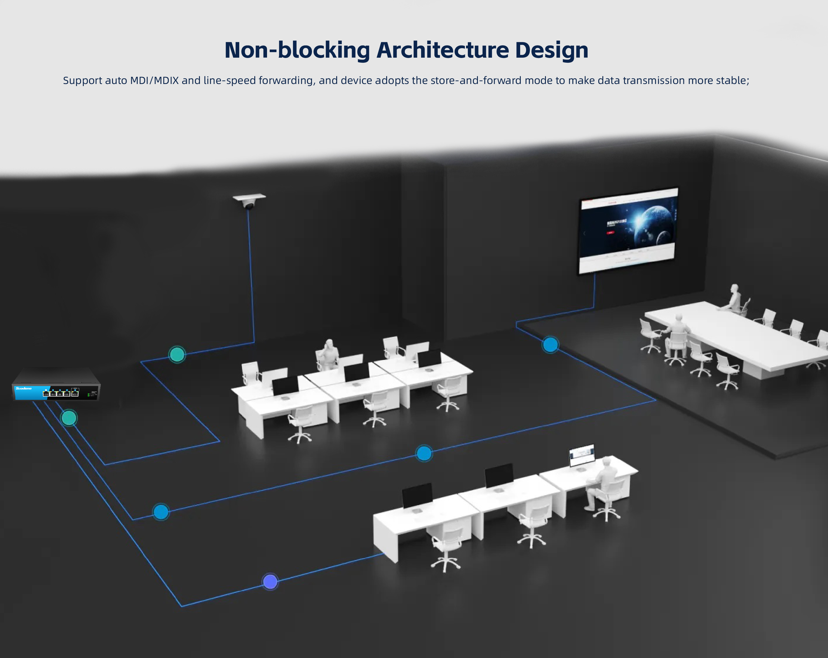 and provide power to them through Ethernet cables. By adopting a store and forward