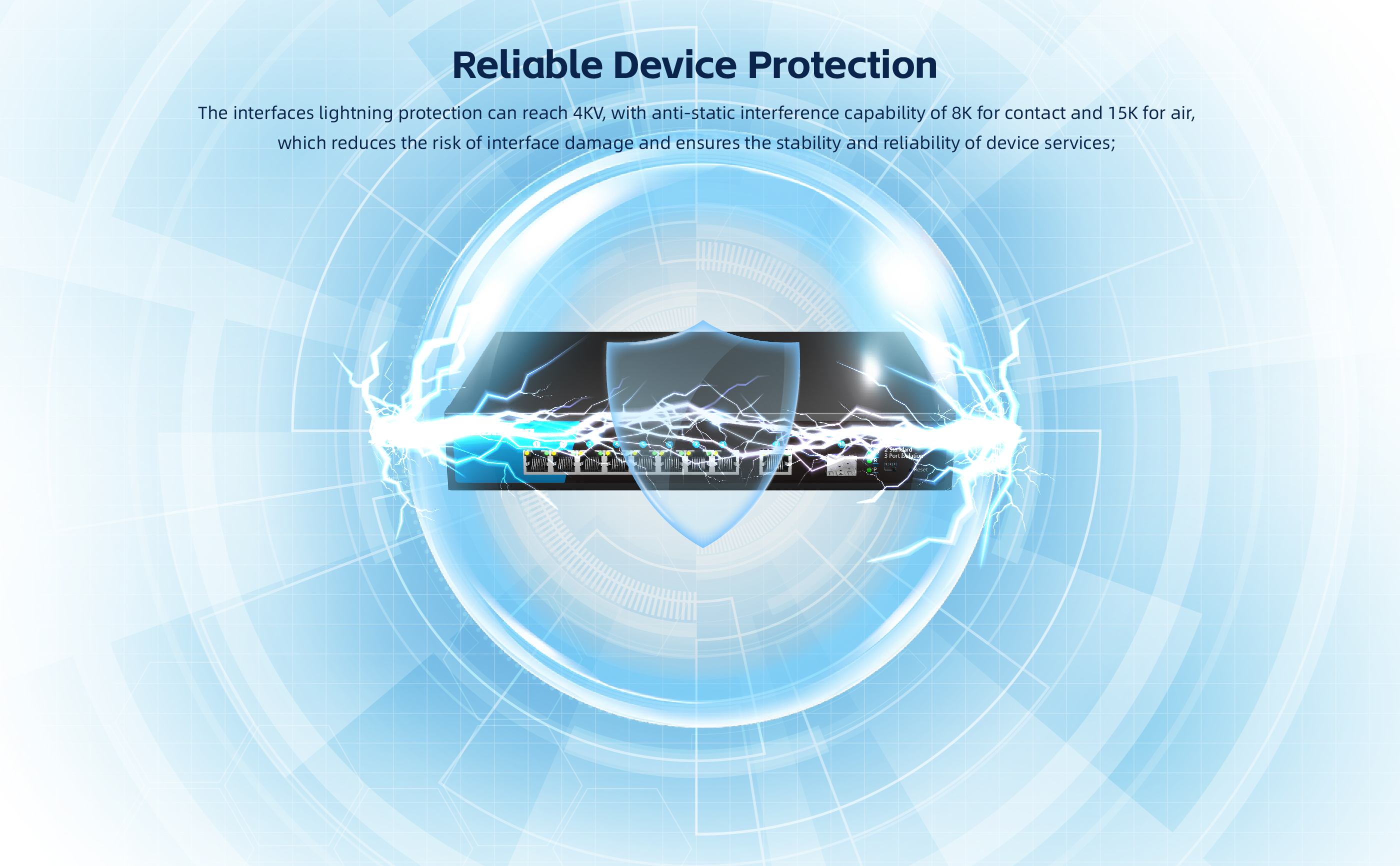 flipping and line speed forwarding functions. Ports 1-8 can all support PoE power supply, following