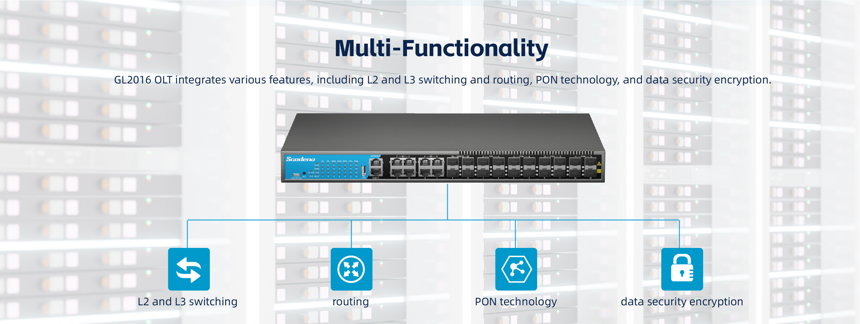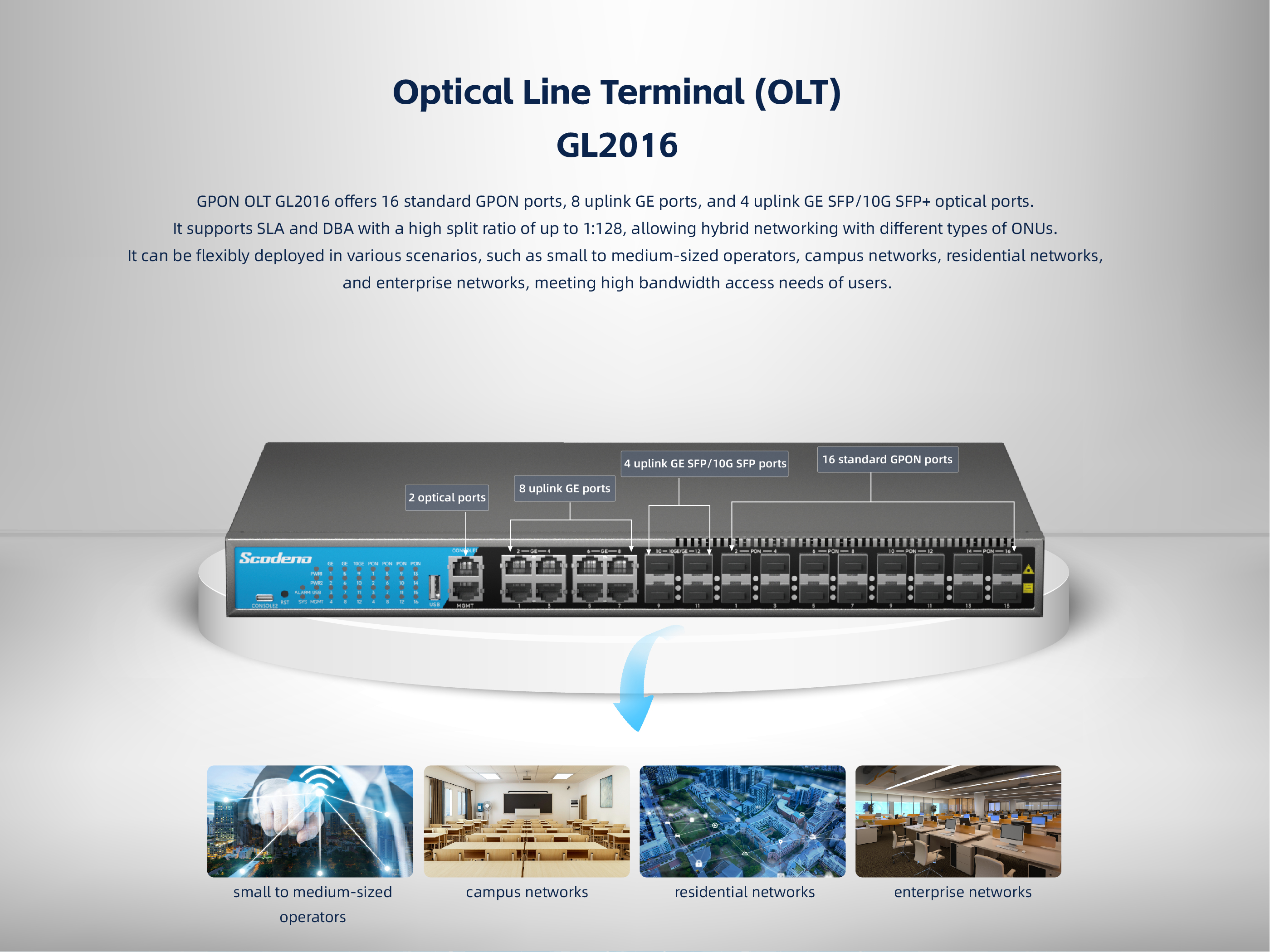 | GL2016 | 16*GPON, 8*GE port, 4 * 10G SFP+, dual power options available | ||
