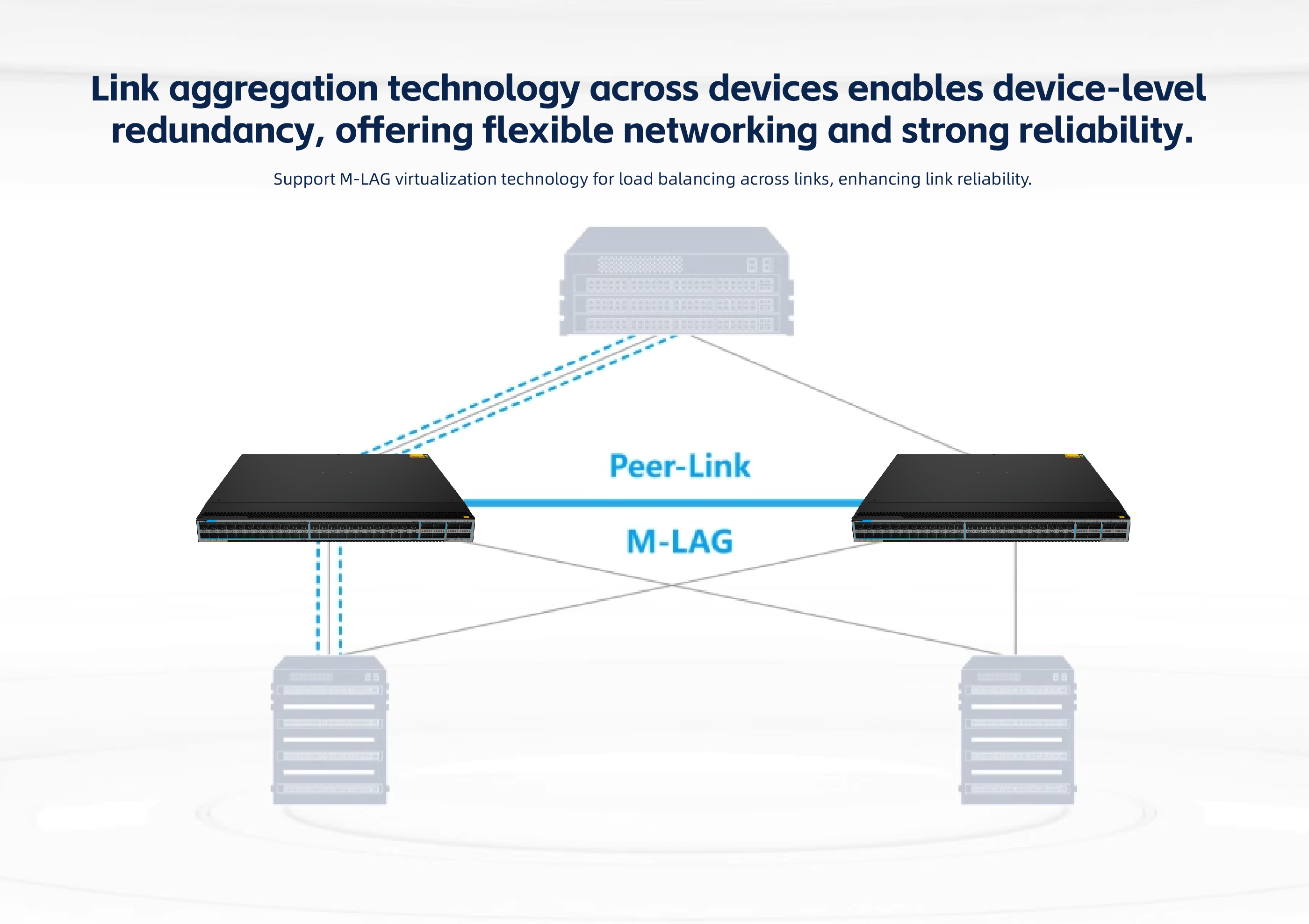 S6750 provides enhanced Ethernet reliability technologies such as STP/RSTP/MSTP, R-link millisecond level protection switching, LB (loopback detection), etc., ensuring link level reliability.